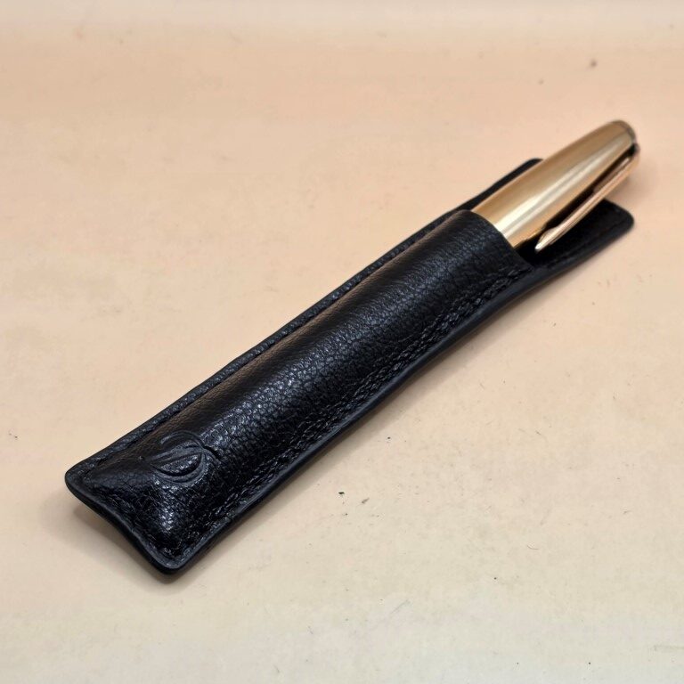 Etui a stylo de la marque S.T. DUPONT en cuir noir.