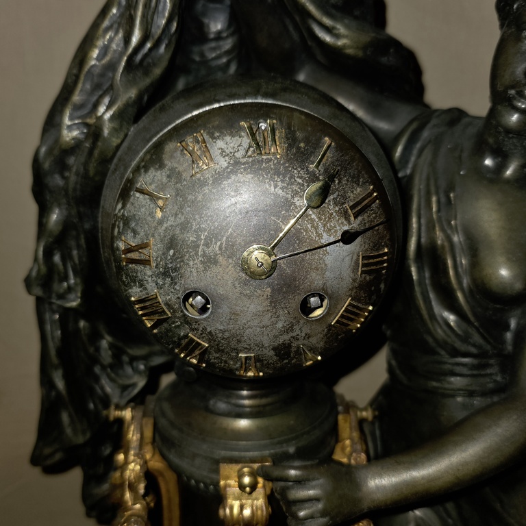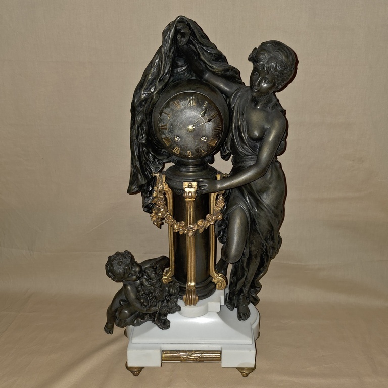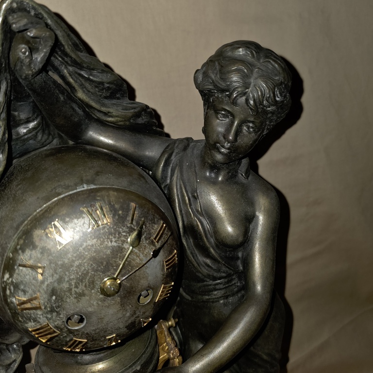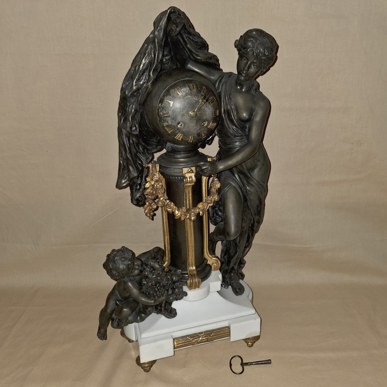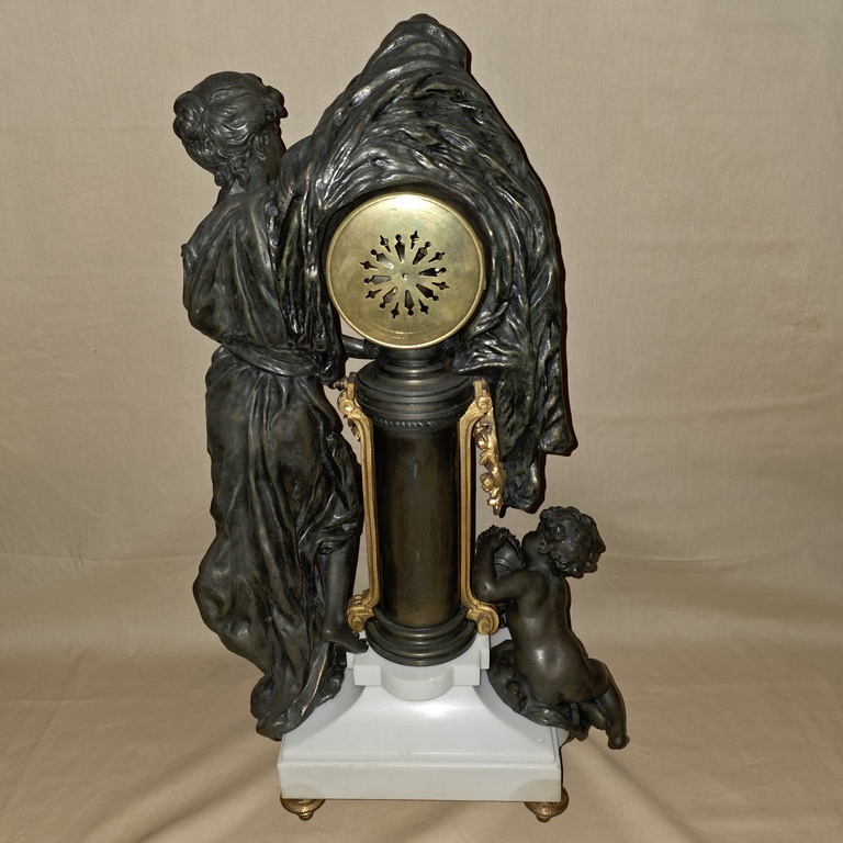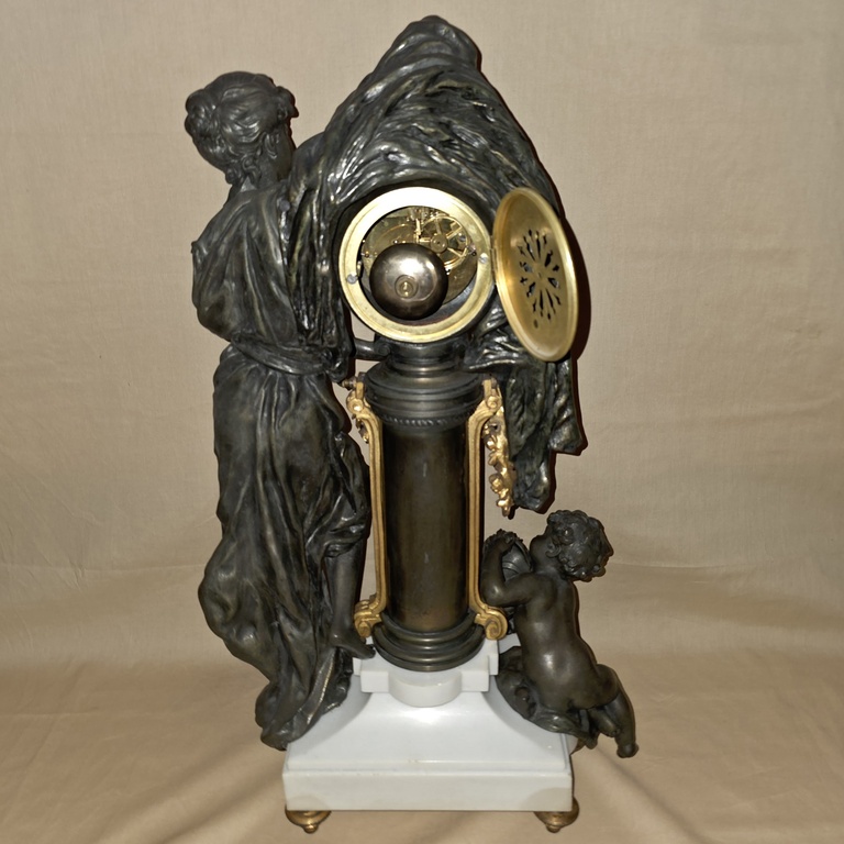 Pendule en régule et marbre représentant la nuit recouvrant le monde.